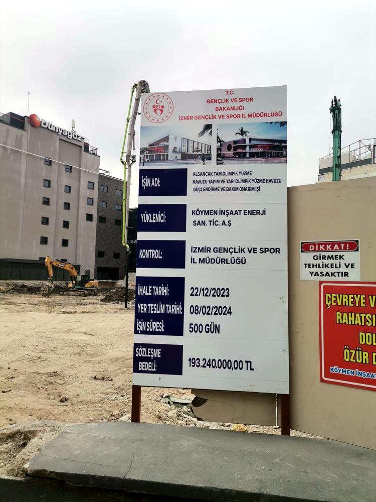 Türkiye'nin ilk olimpik stadı olan Halkapınar'daki İzmir Atatürk Stadı'nı birçok branşın salon ve sahalarının yer aldığı spor kompleksine çeviren Gençlik Spor Bakanlığı'nın İzmir'in havuz hasretine son vermek için tesis bünyesinde 2022 yılında 220 milyon TL ihale bedeliyle başlattığı olimpik havuzun inşaatı son aşamalara geldi.