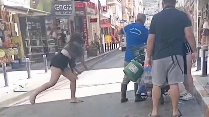 Tartışmanın büyümesiyle taraflardan biri Mustafa Ç.'ye temizlik fırçasının sapıyla vururken, diğeri ise motosikletini düşürüp, üzerindeki malzemeleri tekmeledi. Kavgayı ayırmak isteyenlere de engel olan ikili, bir kadını itip yere düşürdü, başka kadını ise tekmeledi.