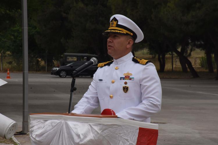 Törende konuşan İzmir Deniz Er Eğitim Merkezi Komutanı Deniz Piyade Yarbay Anıl Karaağaçlı, "Üç hafta önce birliğimize katılarak temel askerlik eğitimini başarıyla tamamlayan vatan sevdalısı genç denizcilerin; rengini ecdat kanından, kumaşını şehit teninden alan, ay yıldızı hürriyetin ve istiklalin timsali olan bayrağımızın gölgesinde, şehitlerimizin yüce ruhları huzurunda namusları üzerine edecekleri yemine tanıklık edeceğiz. Bu yeminin teminatı şeref, bedeli ise gerektiğinde vatan uğruna canını feda etmektir" dedi.
