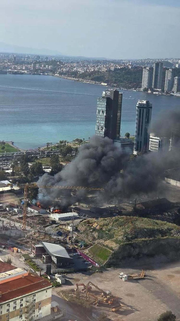 Bayraklı ilçesi Ozan Abay Caddesi'ndeki bir inşaat şantiyesinde, saat 15.00 sıralarında yangın çıktı. Yangını gören çevredekiler, durumu 112 Acil Çağrı Merkezi'ne bildirdi. İhbarla bölgeye çok sayıda itfaiye ekibi sevk edildi. Alevler, park halindeki 2 otomobile de sıçradı.