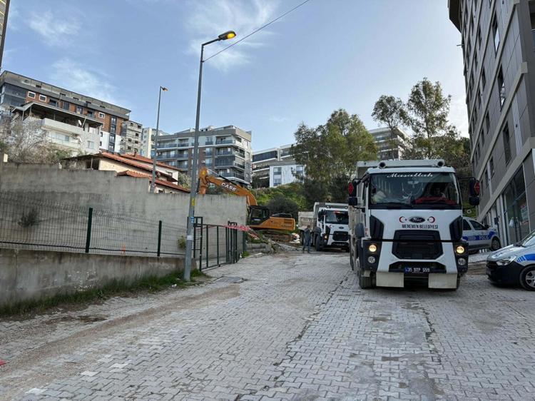 Olayın meydana geldiği sokakta ekipler tarafından başlatılan çalışmalara devam ediliyor. Menemen Belediyesi ekipleri tarafından kayan topraklar iş makineleriyle kamyonlara yüklenip, bölgeden taşınıyor.