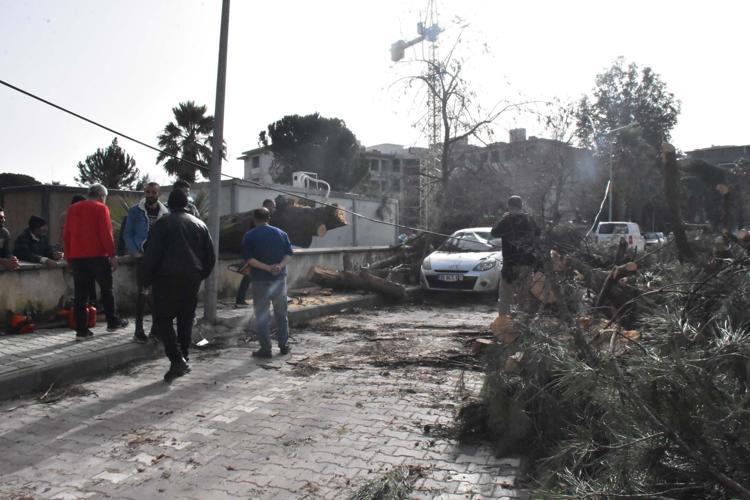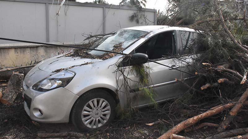 Esat Paşa Mahallesi Yüksel Kayan Caddesi’nde bugün öğle saatlerinde kuvvetli rüzgar nedeniyle bir çam ağacı devrilip park halindeki bir otomobilin üzerine düştü. Olayın ardından ekipler tarafından ağaç, gövdesinden kesilerek otomobilin üzerinden kaldırıldı.