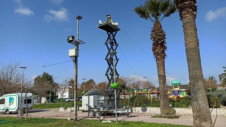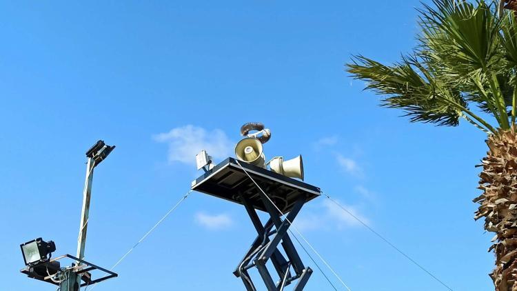 Etrafı şeritle çevrilen ve üzerinde dört hoparlörün bulunduğu sistemle, olası tsunami ve acil durumlarda bölge halkına uyarıda bulunulacağı bildirildi. Mobil siren sistemi çalışmaya başladı.