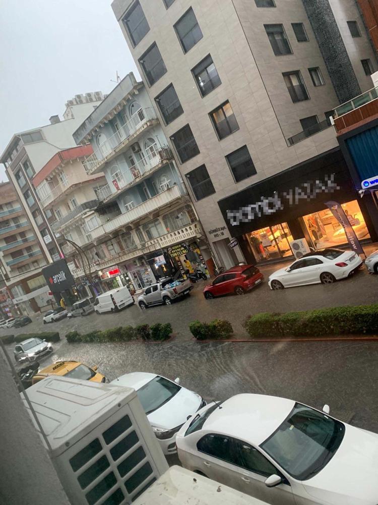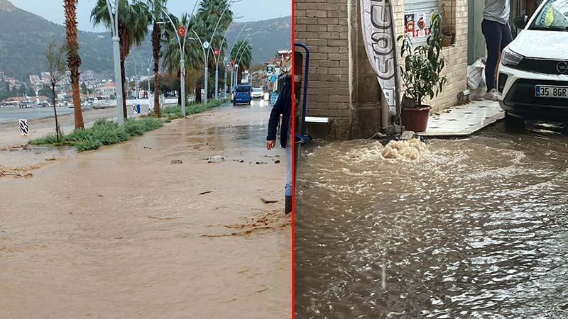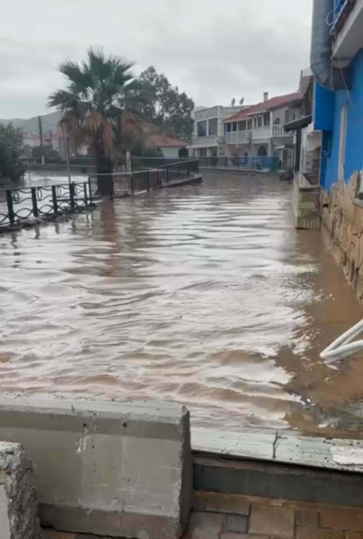 İzmir'in Foça ilçesinde etkili olan sağanak, hayatı olumsuz etkiledi. Bazı cadde ve sokaklar göle döndü.