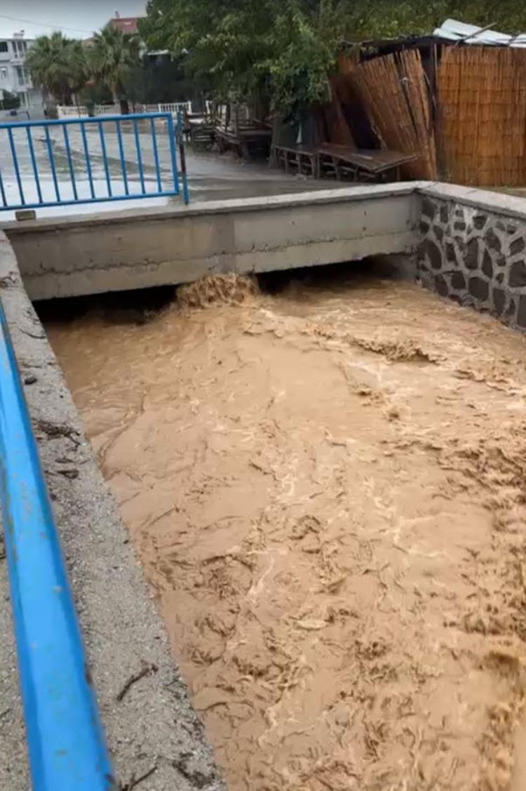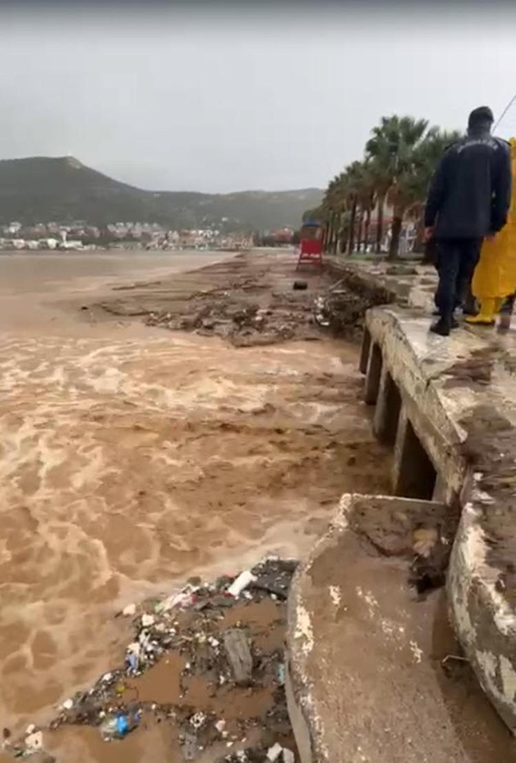 İzmir'in Foça ilçesinde sabah saatlerinde etkili olan gök gürültülü sağanak sırasında sel suları Gaziosmanpaşa Caddesi'ndeki Pazaryeri mevkisinde bulunan Şaftlı Dere'de taşkına neden oldu. Yağmur suları Ali Stair Caddesi'nde denizle buluştu.
