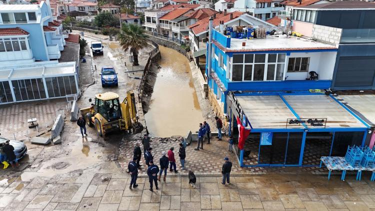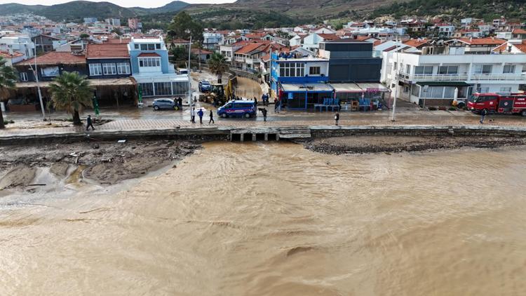 İzmir'de sağanağın etkili olduğu yerlerden biri ise Karaburun ilçesi oldu. Karaburun'un kırsal Saip Mahallesi'nde yağışla birlikte dereler taştı. Sel nedeniyle cadde ve sokaklar suyla doldu. O anlar dronla görüntülendi.