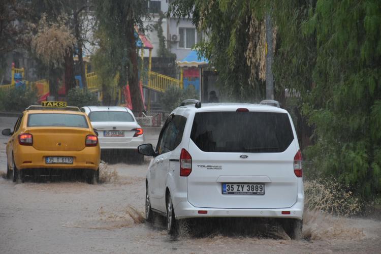 Öte yandan son 24 saatte en çok yağış alan ilçe Dikili'de de cadde ve sokaklar göle döndü. Araçların sürücüleri trafikte ilerlemekte güçlük çekerken, bazı ev ve iş yerlerini de su bastığı belirtildi.