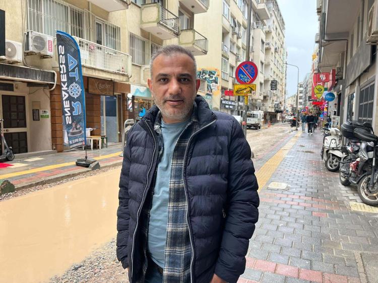 Alsancak’ta ayakkabı mağazası işleten Baran Gültekin, "Dün akşam dükkanın içini komple sel suları bastı. Ayakkabılarla beraber hepsini dışarı attık. Ayakkabılar çöp oldu. 7 aydır buralar hep çukur. Buradan geçen kimi araba tamponunu bırakıyor, kiminin alt takımı gidiyor. Biz derdimizi anlatamıyoruz. Kışın sel, yazın da toz toprak. Burada üst katta oturuyorum. Evimin içi tamamen toz. Her gün temizliyorum. Çocuklarla hepimiz hasta olduk. Yolda yürüyemiyoruz. Gelen kepçe toprak atıyor, düzeltiyor" dedi.