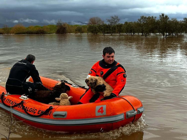 Bergama ilçesi Kaşıkçı Mahallesi'nde dere taşması sonucu mahsur kalan hayvanlar için Veteriner İşleri ve İtfaiye Dairesi Başkanlığı ekipleri yönlendirildi. Koyun, tavuk ve köpekleri kurtarma çalışmaları devam ediyor. Dağıstan Mahallesi'nde de seralarda oluşan hasara yönelik inceleme başlatıldı. Ayrıca İZSU ve Büyükşehir Belediyesi ekipleri, Torbalı ilçesi Ayrancılar Mahallesi Hayıtözü Deresi'ndeki taşkına ve su baskınlarına müdahale ediyor. İzmir Büyükşehir Belediyesi, kent merkezindeki taşkın ve su birikintisine yönelik çalışmalarına da devam ediyor.