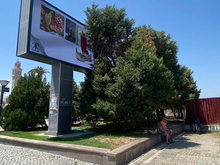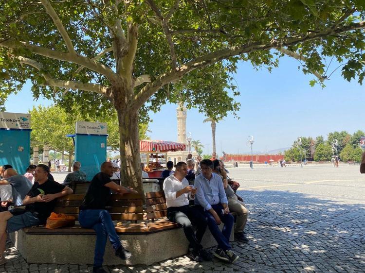 İzmir'de hava sıcaklığı 40 dereceyi aşarken, vatandaşlar ağaçların altına ve gölge yerlere sığındı.