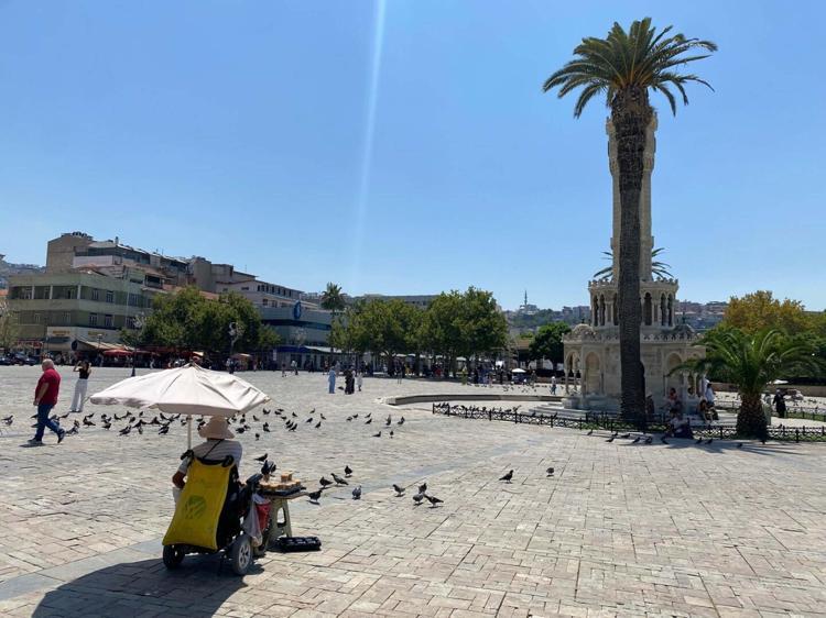 İzmir'de de hava sıcaklıkları yer yer 40 derecenin üzerine çıktı. Dün en yüksek sıcaklık Tire'de 43,8 dereceyle ölçülürken, merkez ilçelerde 40,9 dereceyle en sıcak ilçe Buca oldu. Sıcaklıklar bugün de devam ederken, şehrin işlek noktalarından olan Konak Saat Kulesi'nin bulunduğu Atatürk Meydanı da kalabalık ciddi oranda azaldı. Meydana gelen vatandaşların birçoğu güneşten korunmak için ağaçların altına ve gölge yerlere sığındı. Sıcaklık havanın 25 Temmuz'a kadar devam edeceği bildirildi.
