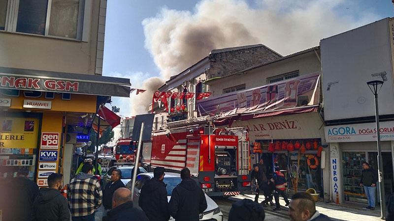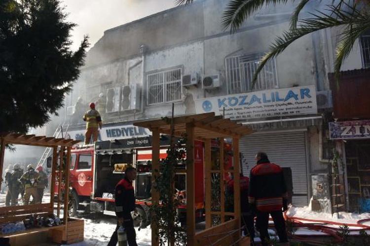 İzmir'in tarihi çarşısı Kemeraltı'ndaki hediyelik eşya dükkanında çıkan yangın, bitişikteki aynı alanda faaliyet gösteren 3 işletmeye de sıçradı. Yangının elektrik kablosundan çıktığı, iş yeri sahibinin ilk müdahalesine rağmen söndürülemeyip, büyüdüğü belirtildi. Alevler itfaiye ekiplerinin 2 saatlik çabası sonucu söndürüldü.