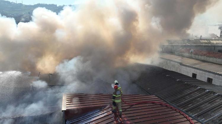 Nedeni henüz belirlenemeyen yangında, alevler, kısa sürede büyüdü, gökyüzünü de siyah dumanlar kapladı.