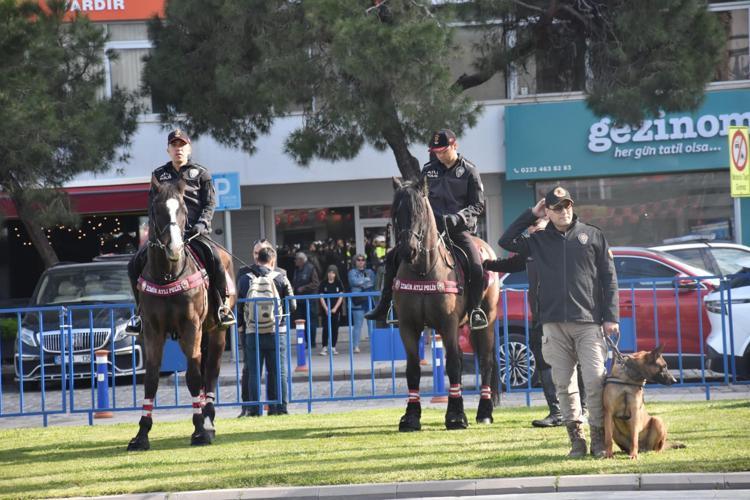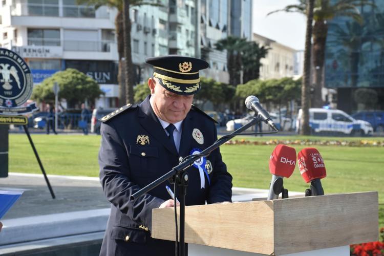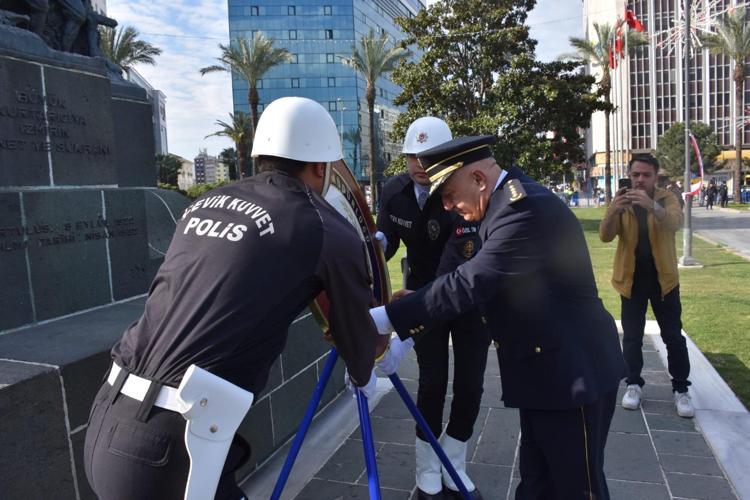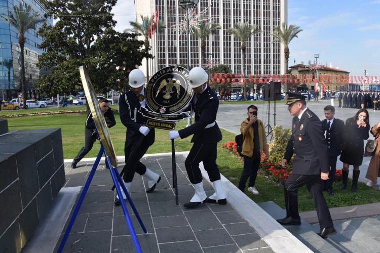 İzmir’de Türk Polis Teşkilatı'nın 181'inci kuruluş yıl dönümü ve Polis Haftası nedeniyle Cumhuriyet Meydanı'nda tören düzenlendi. Törene, İzmir İl Emniyet Müdürü Celal Sel, Rüştü Ünsal Polis Meslek Yüksekokulu Müdürü, 1’inci sınıf Emniyet Müdürü Ökkeş Bulut, polis memurları, şehit yakınları ve gaziler katıldı. Törende, Sel ve Bulut tarafından Atatürk Anıtı'na çelenk konuldu. Ardından saygı duruşunda bulunulup, İstiklal Marşı okundu. İl Emniyet Müdürü Celal Sel, Anıt Şeref Defteri'ni imzaladı. Fotoğraf çekiminin ardından polis araçları, motosikletleri ve ATV'leriyle gerçekleştirilen kortejle tören sona erdi.