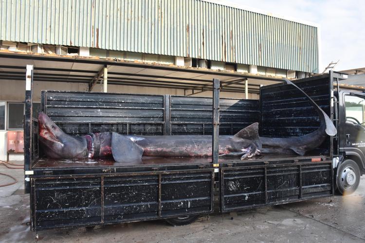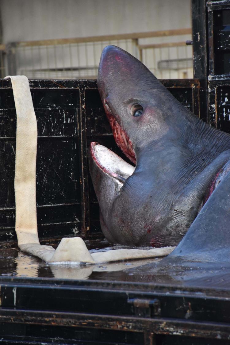 İzmir'in Urla ilçesinde yakalanan 10 metre boyunda, tonlarca ağırlıktaki camgöz cinsi köpek balığı, İzmir Katip Çelebi Üniversitesi'ne (İKÇÜ) getirildi. İKÇÜ Su Ürünleri Fakültesi Dekanı Prof. Dr. Tevfik Tansel Tanrıkul, balığın mumyalanacağını belirterek, "Ölmesine engel olamadık ama hiç olmazsa eğitim amaçlı sergileyerek ölümsüzleştireceğiz" dedi.