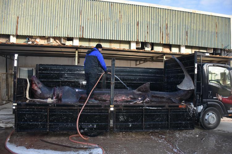Urla ilçesinde tekneyle ava çıkan balıkçılar, 10 metre boyunda, 2 ton ağırlığında camgöz cinsi köpek balığı yakaladı. Köpek balığı, bu sabah vinçle yüklendiği kamyonla İzmir Katip Çelebi Üniversitesi (İKÇÜ) Su Ürünleri Fakültesi'ne getirildi.
