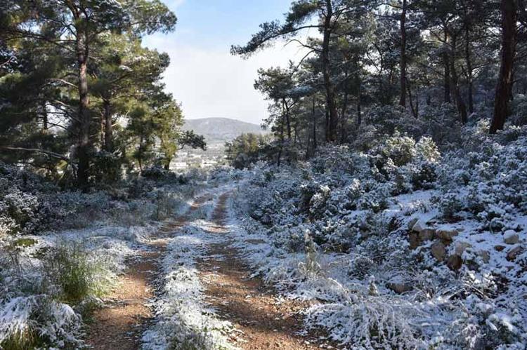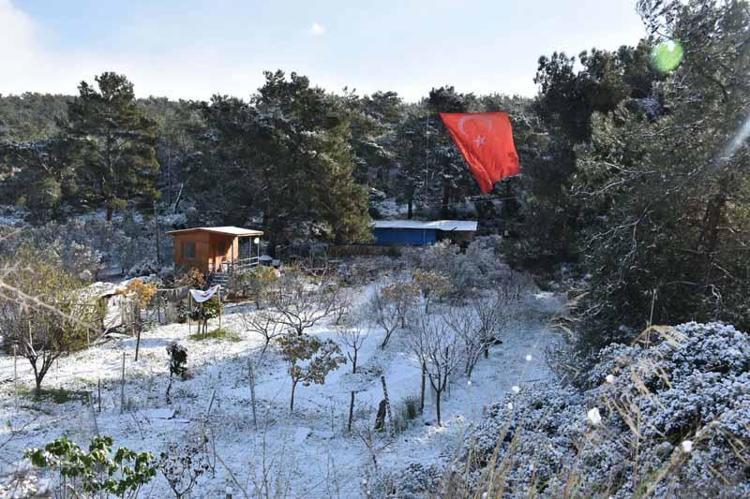 İzmir’in Urla ve Karaburun ilçelerinin yüksek kesimlerinde gece saatlerinde kar yağışı etkili oldu. Bağ ve bahçelerde oluşan seyirlik manzara, dron ile görüntülendi.