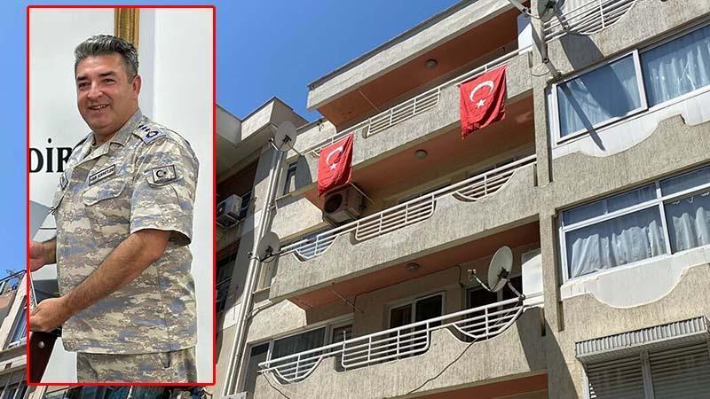 Libya'da geçirdiği kalp krizi sonucu şehit olan Hava Piyade Albay İsmail Haldun Maden'in İzmir'deki babaevine Türk bayrakları asıldı.