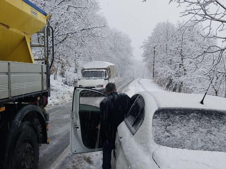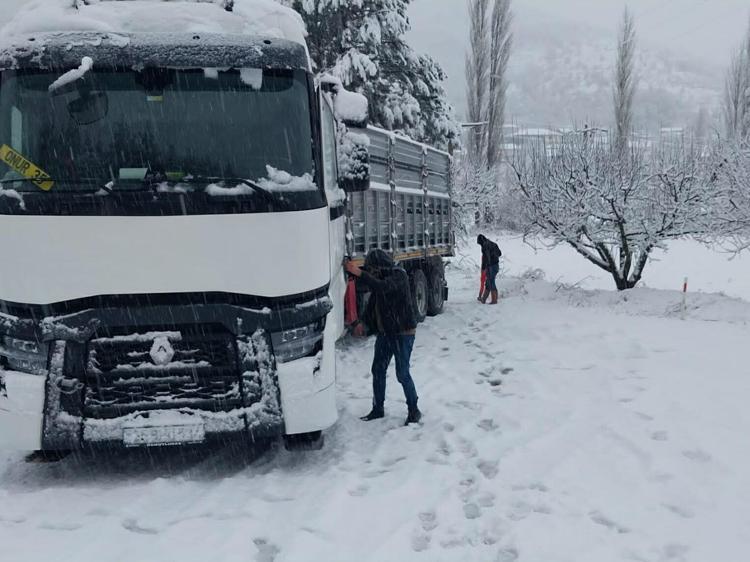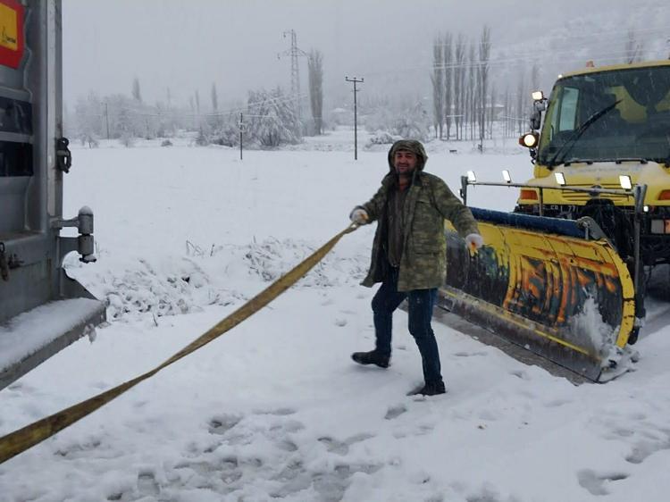 Yolların kapanmaması için kar küreme ve tuzlama çalışması yapıldı. Yolda kalan araçlar ekiplerce çekildi.