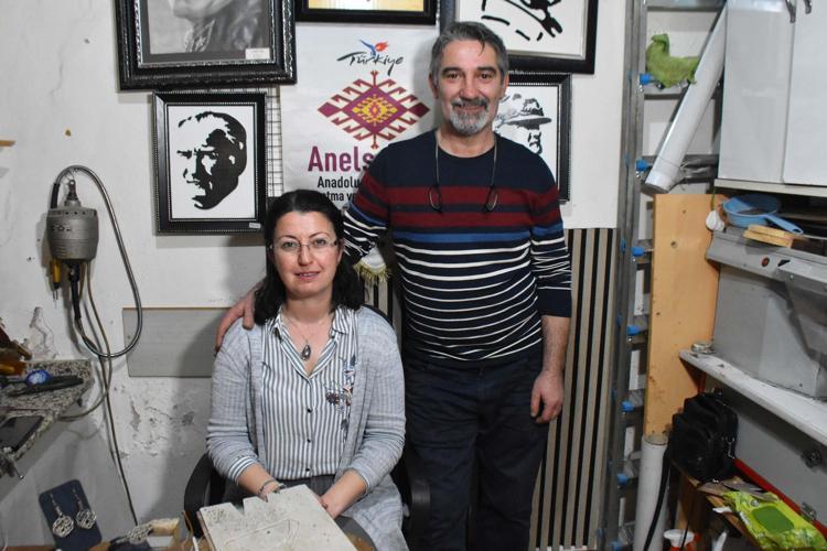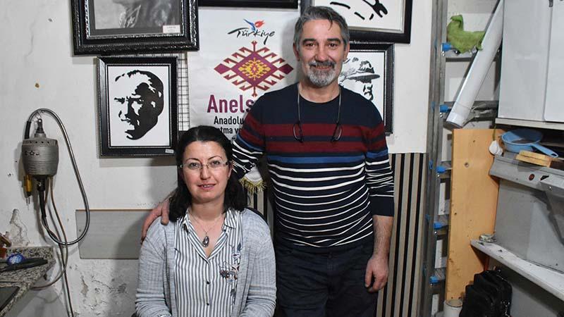 İzmir'de yaşayan, ikisi de Kültür ve Turizm Bakanlığı'nın Somut Olmayan Kültürel Miras Taşıyıcısı ünvanına sahip, naht sanatı ustası Murat Vatan (48) ile kazaziye ustası Pınar Vatan (46) çifti, Kutu Han'daki atölyelerinde unutulmaya yüz tutmuş sanatlarını yaşatmaya çalışıyor.