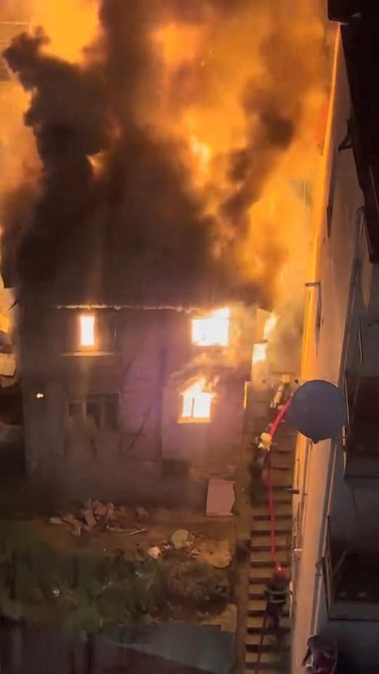 İzmit’te 2 katlı metruk bina alev alev yandı