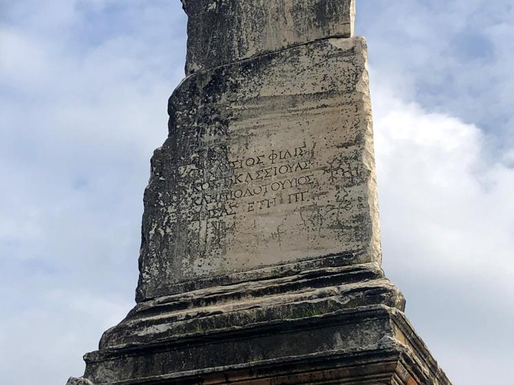 Anıtın üzerinde bu saçma izleri de görülebilir. Burada bir altıncı taş daha olduğu ve üzerinde Zeus kartalı olduğu tahmin ediliyor. Bu anıt depremlere ve doğa şartlarına direnerek ayakta kalmaya çalışıyor'' dedi. Mehmet BULDU/İZNİK (Bursa), (DHA)