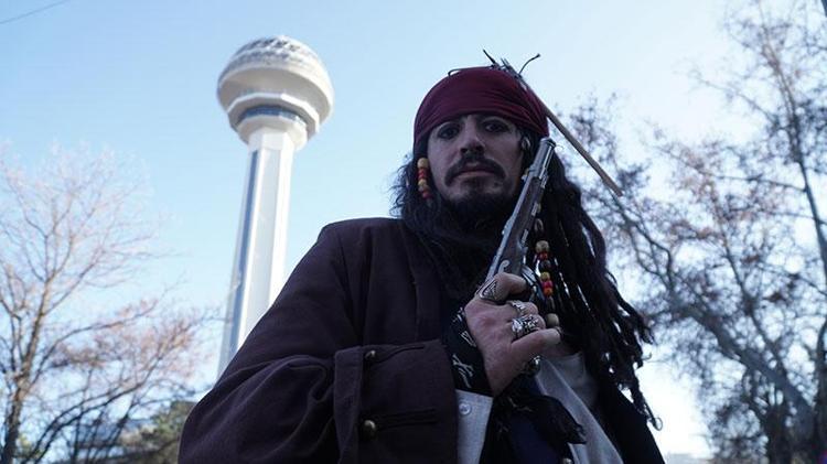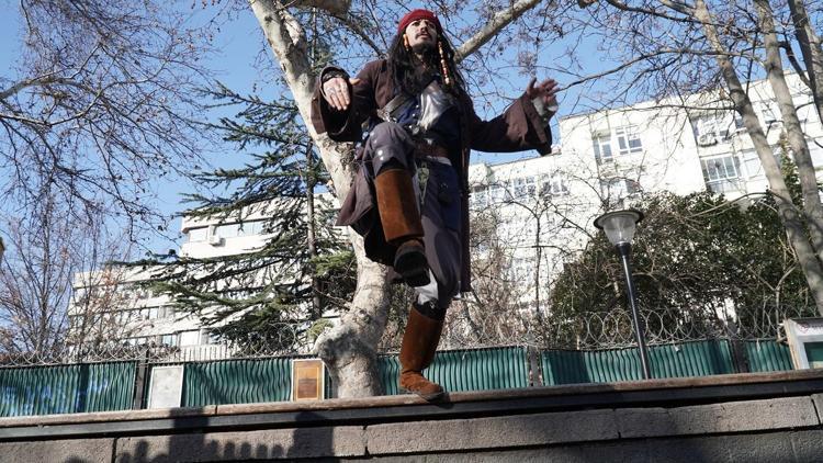'Jack Sparrow' kostümüyle Ankara sokaklarında gezdi