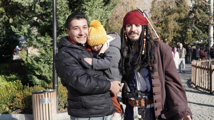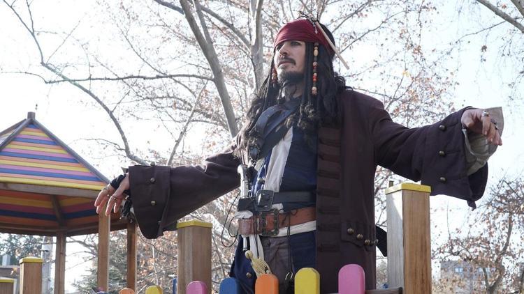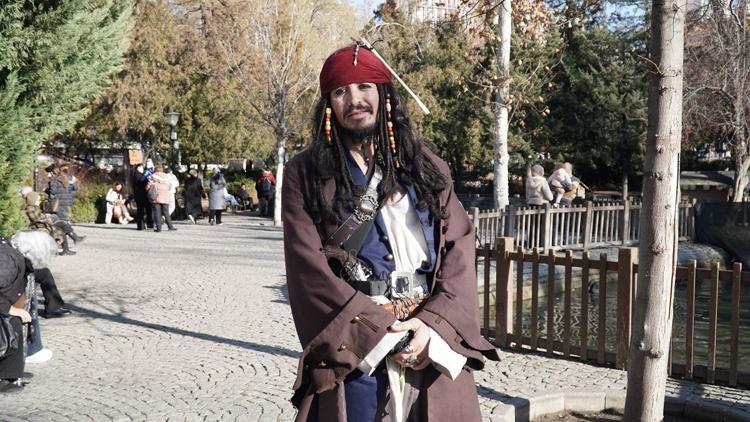 Ankara hayranı olduğu Karayip Korsanları filminin kahramanı 'Jack Sparrow'un kostümüyle sokaklarda gezen makine ustası Ersin Tarhan (39), dikkat çekti.