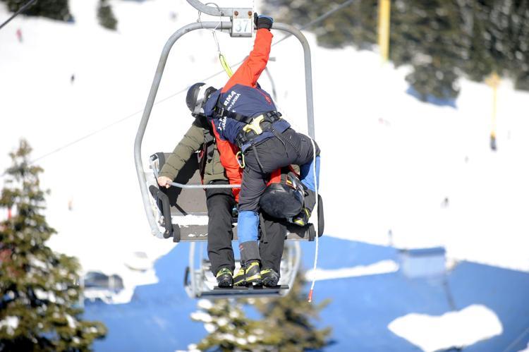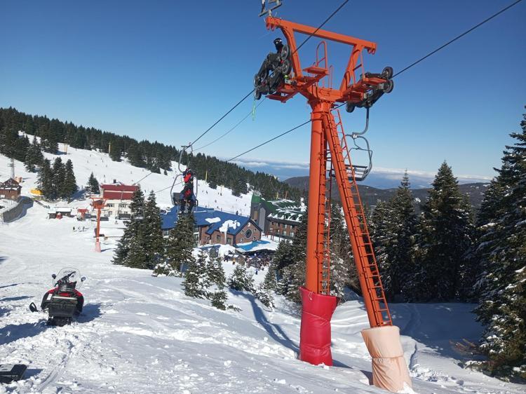 Bir başka tatbikatta ise bozulan telesiyejde bir tatilcinin mahsur kaldığı ihbarıyla harekete geçen ekipler, yine kar motorlarıyla engebeli ve dik araziye ulaştı. 2 JAK personeli telesiyeje çıkıp gerekli önlemleri aldıktan sonra tatilciyi kurtarmak için harekete geçti. Halatla bağlandığı tel üzerinden telesijeydeki tatilciye ulaşan JAK personeli, koruma setiyle güvenliğini sağladığı tatilciyi 10 metre yüksekten indirerek kurtardı.