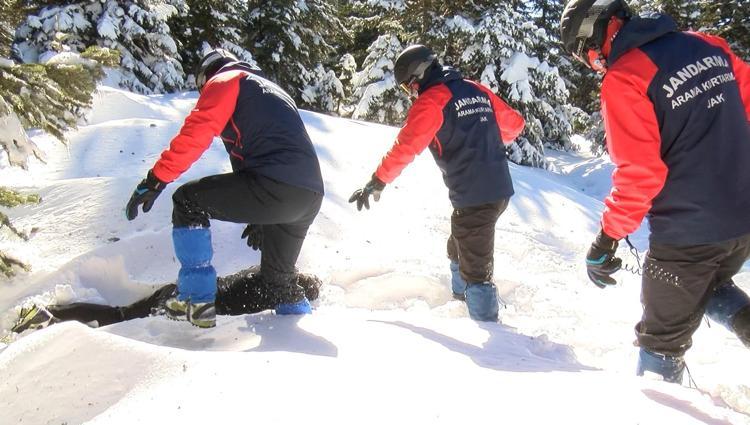 İl Jandarma Komutanlığı'na bağlı JAK timleri, kayak sezonunun devam ettiği 2 bin 543 metre yüksekliğindeki Uludağ'da 7 gün 24 saat 3 tim ile teyakkuz halinde. Hareket kabiliyetlerini geliştirmek için, belirli periyotlarla arama kurtarma tatbikatları gerçekleştiren JAK timlerinin kış tatbikatı, DHA tarafından görüntülendi. JAK timleri, senaryo gereği, kayakçının pist dışına çıkıp yaralanarak ormanda mahsur kaldığı ihbarıyla harekete geçti.