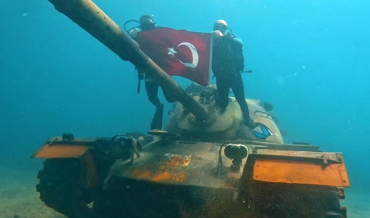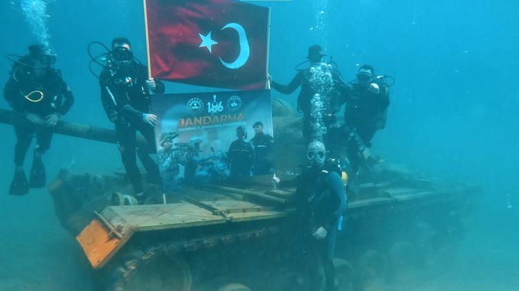 Jandarma, Saros'ta batık tanka dalış yaparak kuruluş yıl dönümünü kutladı