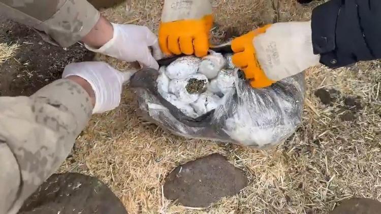 Dron destekli operasyonda ekipler, samanlıkta, taşların altında ve evlerde gizlenmiş 4 uzun namlulu piyade tüfeği, 11 tabanca, 14 tüfek, 27 şarjör, 2 bin 683 mermi, balistik yelek, 740 gram esrar, hassas terazi, bir miktar sentetik uyuşturucu ve çalıntı 3 motosiklet ele geçirdi. Silah ve mühimmata el koyan ekipler, 23 şüpheliyi gözaltına aldı. (DHA)