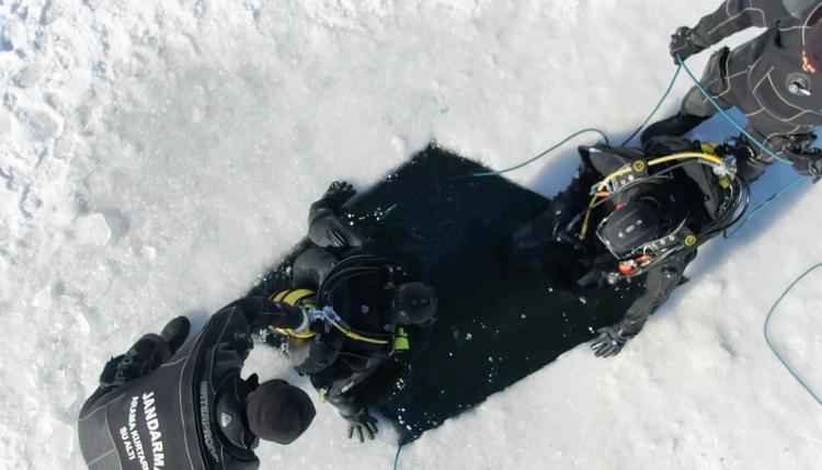 Jandarma SAK timi, kış şartlarına uyum için düzenlenen dalış eğitimini başarıyla tamamladı.