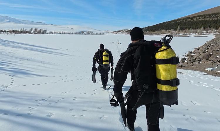 Erzurum İl Jandarma Komutanlığı SAK timi, zorlu kış şartlarında dalış eğitimi gerçekleştirdi.