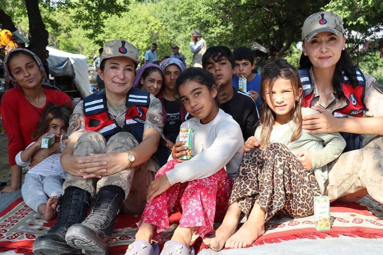 Erzincan İl Jandarma Komutanlığı Aile İçi Şiddetle Mücadele ve Çocuk Kısım Amirliği ekipleri, Adıyaman'dan gelip Erzincan'ın Üzümlü ilçesinde mevsimlik tarım işçiliği yapan ailelerin çocukları Fatma Yiğit ve Feride Gözek’in doğum günü olduğunu öğrendi.