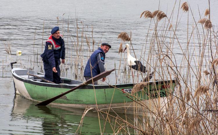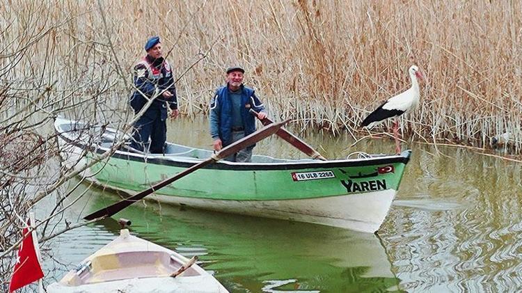 Bursa'da yaşayan balıkçı Adem Yılmaz (68) ile dostluğu filme konu olan ve 'Eskikarağaç Leylek Köyü'ne bu yıl 13'üncü kez gelen Yaren leyleğe, İl Jandarma Komutanlığı personeli ‘Hoş geldin’ ziyaretinde bulundu. Kayığa binen jandarma personeli Adem Yılmaz gölden tuttuğu balıklarla Yaren leyleği beslerken, o anlara ilişkin fotoğraflar, Jandarma Genel Komutanlığı’nın sosyal medya hesabından 'Evine Hoş Geldin Yaren Leylek' notuyla paylaşıldı.
