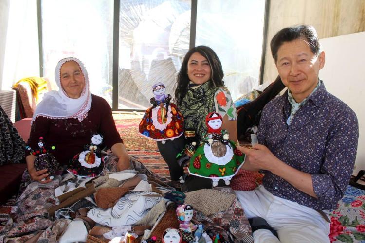 Müzik öğretmeni Hülya Şen ise “Sevgili dostum Takeshi İmamura ile geçen yıl Türkiye'ye geldiğinde Türk halk müziği icra etmiştik. O zaman ona Kapadokya'dan bahsettim. Kapadokya bölgesini çok merak ettiğini söylemişti ve şimdi sözünü tuttu, şu anda bizlerle birlikte. Dün Kapadokya’da Erdemli Vadisi’ni gezdirdik, Sayın Kaymakamım, Belediye Başkanım da bizlere eşlik ettiler. Takeshi Soğanlı’yı çok merak ediyordu. Soğanlı Çiçek Kadınları Kooperatifi ile birlikte bebek yaptılar. Zaten 12 bin 500 kilometreden yol gelme amacı buydu. Çok da keyif aldı, çok da başarılı bir bebek yaptı. Teknik olarak ilk başta zorlasa da buna çabuk adapte oldu, çok güzel bir bebek yaptı. İsmini de sevgili manevi kızı Filiz’in ismini verdi. Bugün çok eğlendik, birlikte turistlerimize müzik yaptık, bağlama çaldık. Çiçek kadınlarımız da çok eğlendiler, mutlu oldular, onore oldular” diye konuştu.