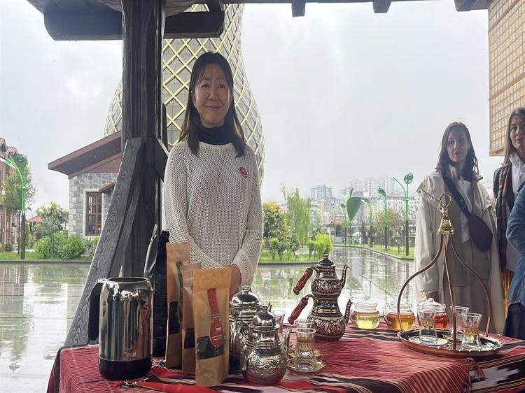 Türk heyeti tarafından Japonya'da yapılan yarışmada ilk 'Türk çayı demleme ustası' seçilen Yumika Arita, Rize'de çay demledi. Türk çayını özenle demleyen Arita, dev çay bardağı önünde sunum yaptı.