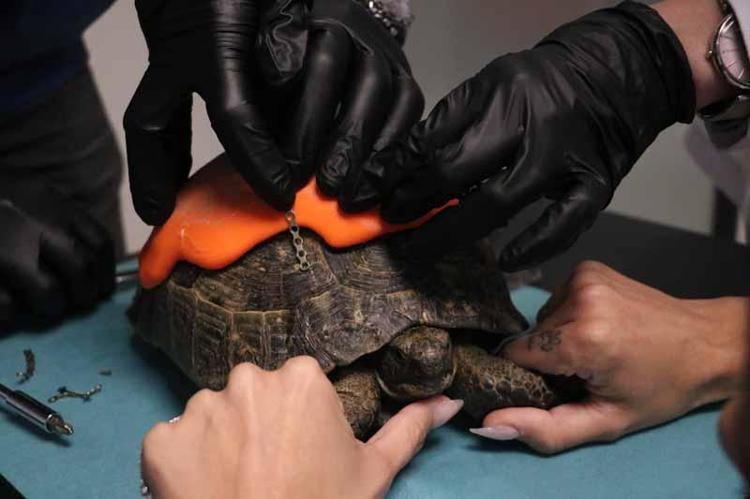 Ankara’da yol kenarında kabuğu kırılmış halde bulunan kara kaplumbağası 'Roka'ya 3 boyutlu protez takıldı.