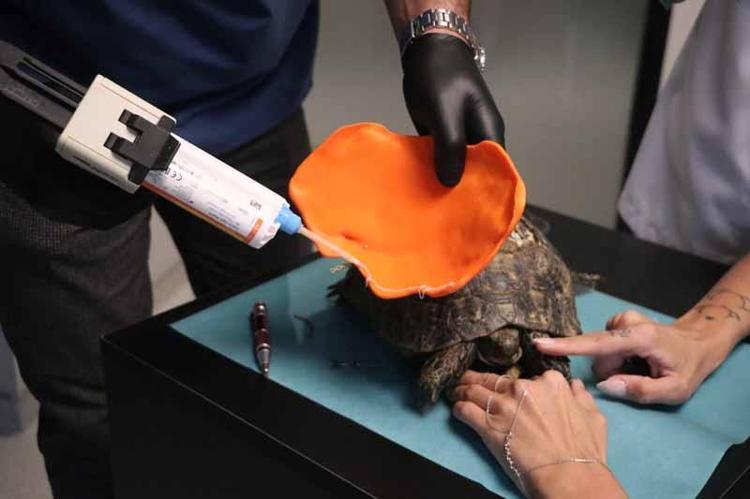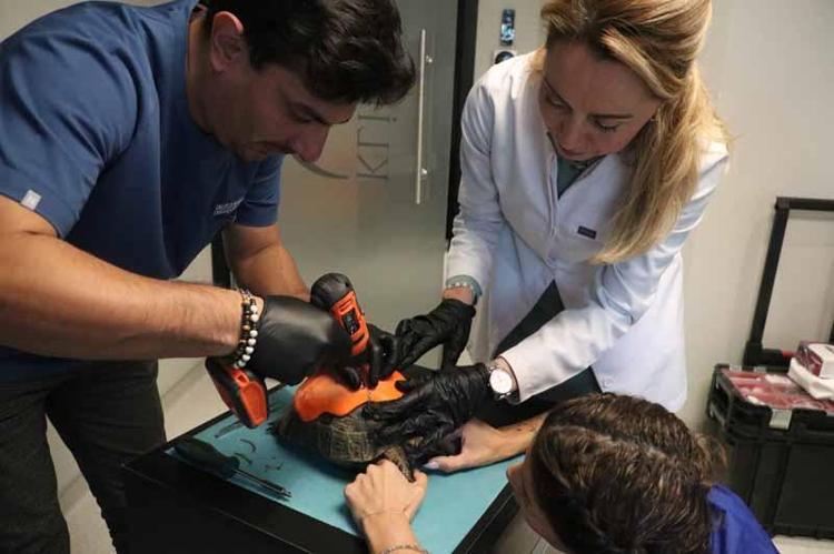 Diş Hekimi Serdar Akdeniz ise, "Kaplumbağanın kabuğunda büyük kırıklar vardı. Geleneksel akrilikle yapılan yapışkanlarla yaptığımız zaman çok başarılı olmayacağını düşündük. Üç boyutlu teknolojileri insanlar için kullanıyoruz; niye kaplumbağa için kullanmayalım dedik. Ve kaplumbağanın ilk önce kabuğunu taradık. Sonrasında da bir tasarım yaptık. Üzerine bu şekilde bir protez kabuk yerleştirdik" dedi.