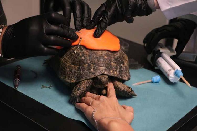 Kabuğu kırılan kaplumbağaya protez takıldı