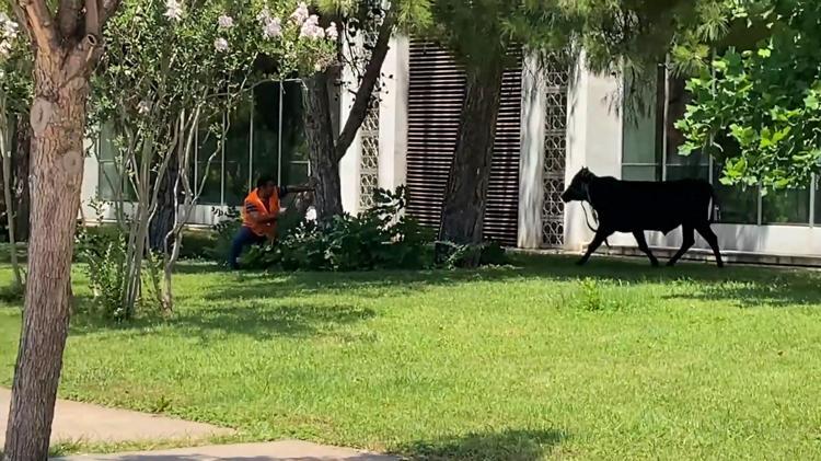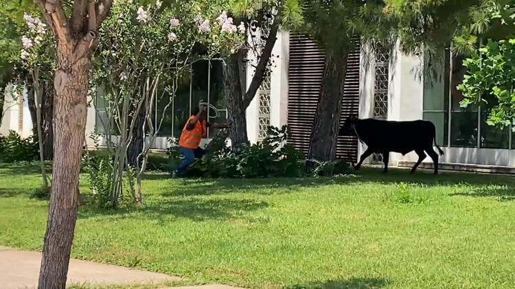 Kampüs içerisinde kaçan boğa ekiplere zor anlar yaşatırken, ekipler bir süre sonra kontrollü şekilde takip ettikleri boğayı iğne yardımıyla uyuşturarak etkisiz hale getirdi.