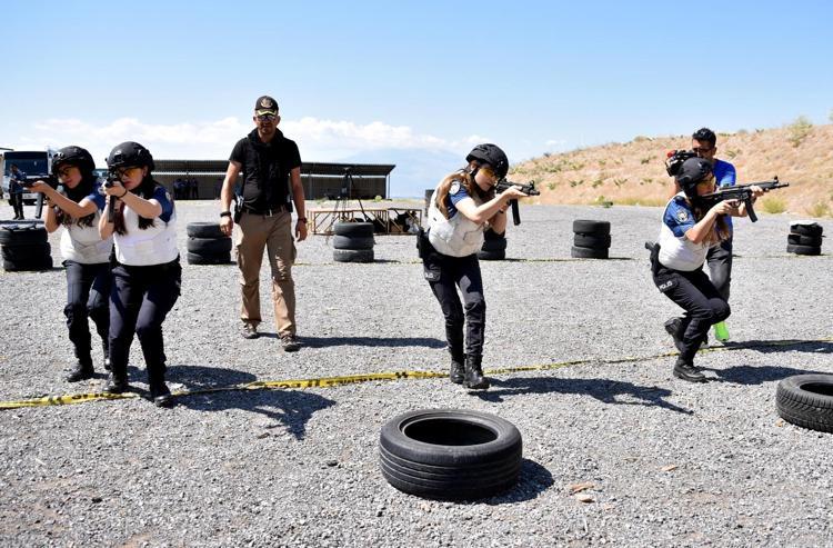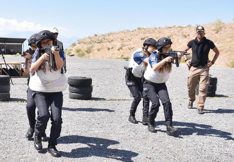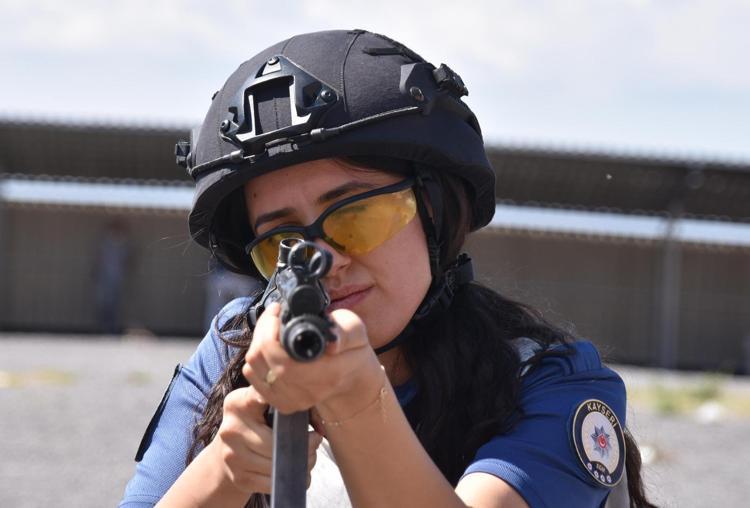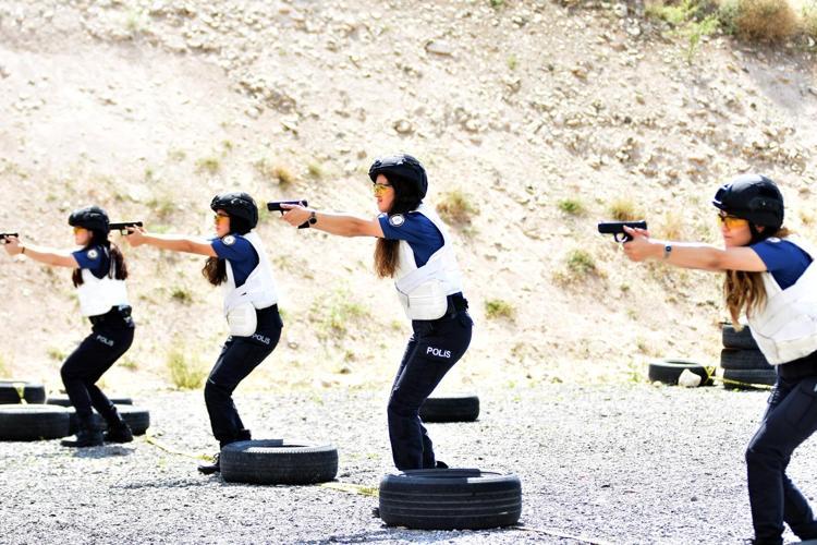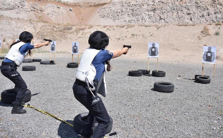 KAYSERİ Emniyet Müdürlüğü'ne bağlı görev yapan kadın polisler, atış poligonundaki eğitimlerinde başarılı atışları ile göz dolduruyor. Kadın polisler eğitimlerde kendilerine belirlenen hedefleri metrelerce uzaktan vuruyor.