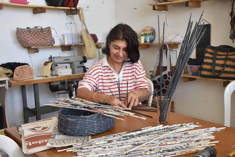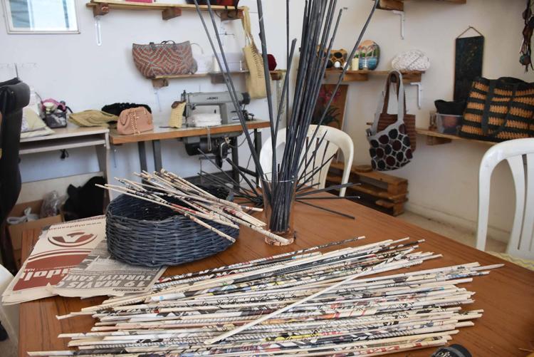 Kadın üreticiler, atık kağıtları sepete dönüştürdü