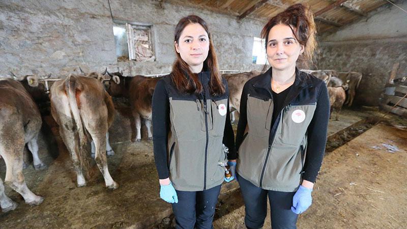 Veteriner hekimler, belirledikleri güzergahtaki köylerdeki büyükbaşları salgın hastalıklardan korumak için aşılıyor. Yeni doğan yavruları da kimliklerini oluşturmak amacıyla küpeleyen ekipler, besicileri salgın hastalıklar konusunda da bilgilendiriyor. Yeni doğan buzağılara brusella, kedi ve köpeklere kuduz aşısı yapan Ekiz ve Tazegül, çalışmalarını zor şartlara rağmen sürdürdüklerini anlatıyor.