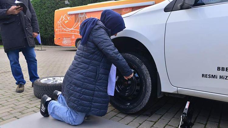 Kadına şiddete rol değişimiyle dikkat çektiler; erkekler dikiş dikti, kadınlar lastik değiştirdi
