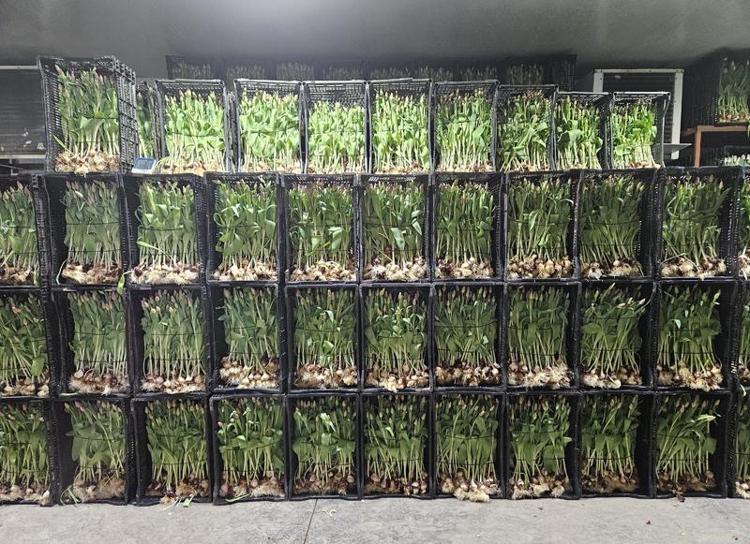Lale soğanlarının su kaplarında, soğuk hava deposunda 4 ile 8 hafta arasında 7- 8 derecede bekletilip, soğuklama ihtiyacı karşılandıktan sonra seraya çıkarıldığını anlatan Ziraat Mühendisi Anıl Yolcular, serada da su dolu kasalar içinde bekletilen lalelerin 21- 25 gün sonra hasadının yapıldığını kaydetti.
