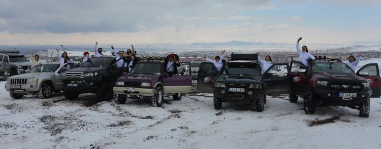 Kurdukları Anadolu Kadın Off-Road ve Doğa Sporları Kulübü'nü 8 Mart Dünya Kadınlar Günü'nde tanıtan Başkan İlknur Yalçın ve üyeler, Palandöken Dağı'nın eteklerinde araçları ile gösteri yaptı.