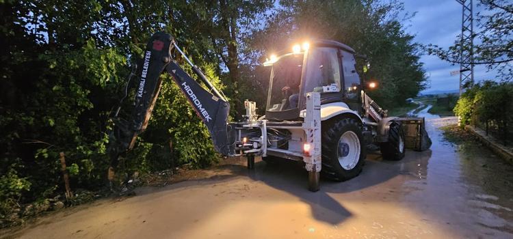 İlçedeki birçok mahallede elektrik kesintileri yaşandı. Belediye ekiplerinin selin yaşandığı yerlerdeki çalışması devam ediyor.