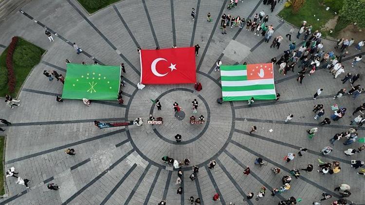 Yaklaşık 300 kişilik grup, Uzunmustafa Mahallesi ile Cedidiye Camii arasında Türk, Çerkes ve Abhaz bayrakları ile yürüyerek sürgüne dikkat çekti. Yürüyüş Cedidiye Meydanı’nda son bulundu.